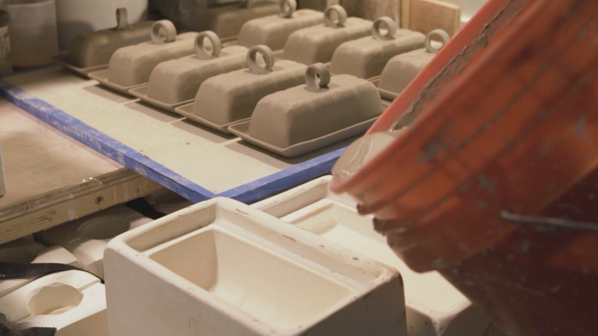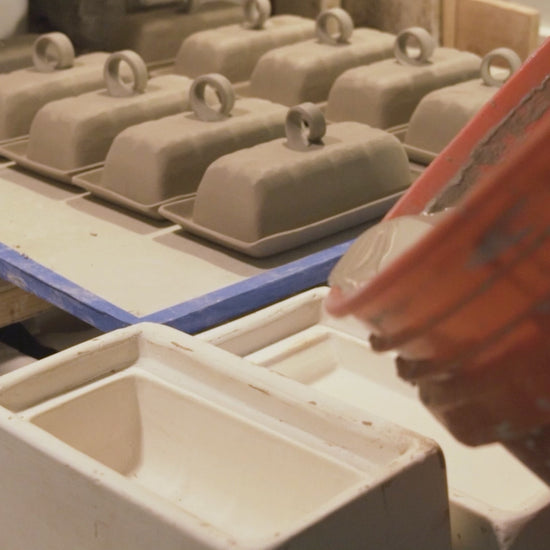 Covered Butter Tray Pottery that is made to Fit 8 Tbsp Sticks of Butter and with a Handle for Easy Use, Glazed to Brighten the Kitchen
