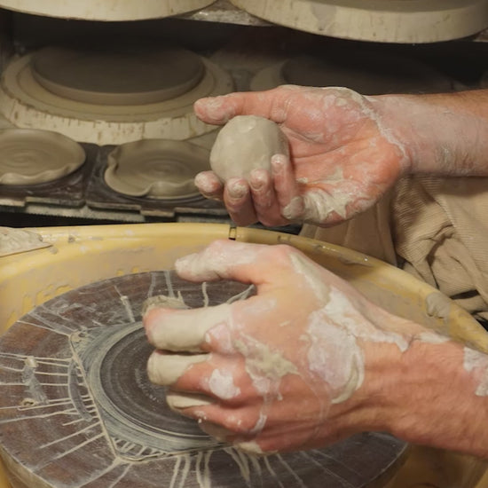These wheel thrown, white stoneware spoon rests come in three color options. The combination of their spiral surface texture, adjusted rim, and glazing give them a unique quality.
